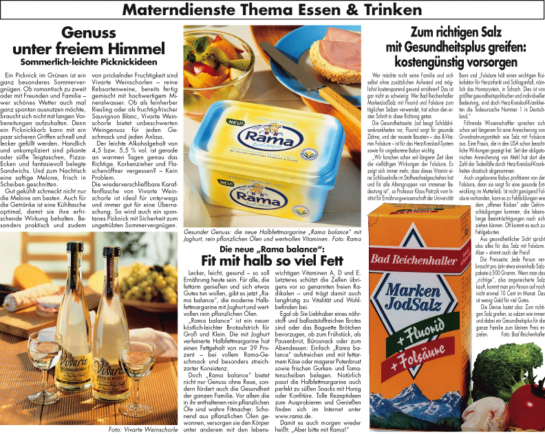Eine Beispielseite mit drei Materndienstbeiträgen