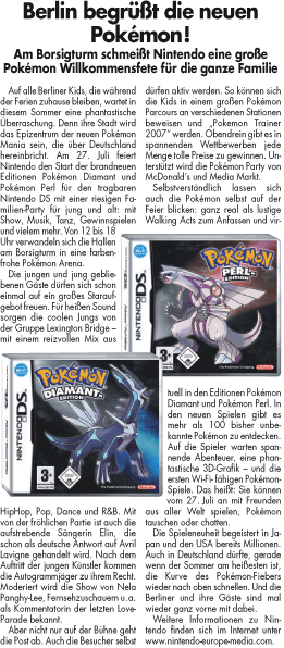 Ein Beispiel für einen regionalen Materndienst. Zur Einführung einer neuen Spielreihe für den Nintendo DS organisierte Nintendo eine große Familienparty in Berlin. Wir sorgen mit einem Materndienst für Berlin und Brandenburg für die Besucher.