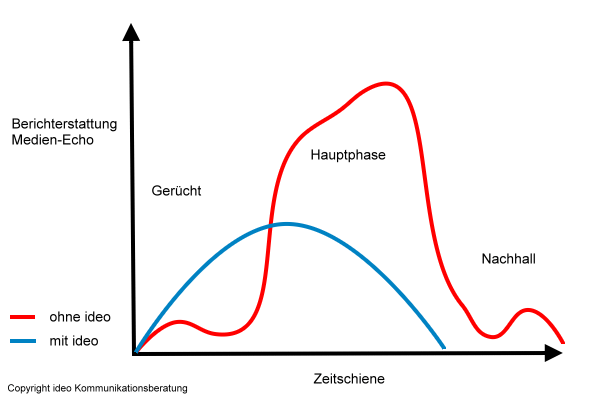 Insgesamt wird der mediale Krisenverlauf deutlich abgeschwächt und objektiviert. Dadurch entstehen dem Unternehmen entweder weniger Imageverluste oder gar Imagegewinne durch das professionelle Umgehen mit der Krise.
